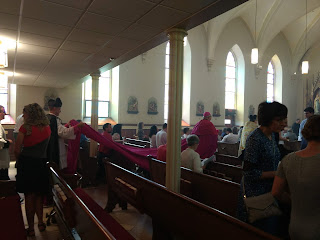 Back at Mass, the Bishop was present with his cappa magna (great cape)