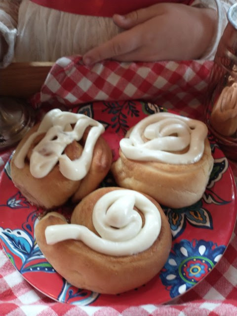 Feast of St. Lucy cinnamon rolls. Marigold was disappointed not to be able to have a pair of eyeballs sitting on the tray as well. 😂