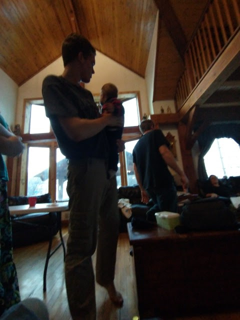 For some reason or other Kili found my overside rubber bands and started playing them by holding them between his teeth so Aragorn helped him build his rubber band guitar.